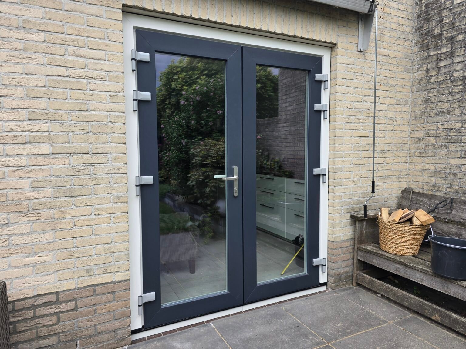 Kunststof Kozijnen Wierden Binnen Wit Glad Buitenkant Zwartgrijs Houtnerf Met Rolluiken